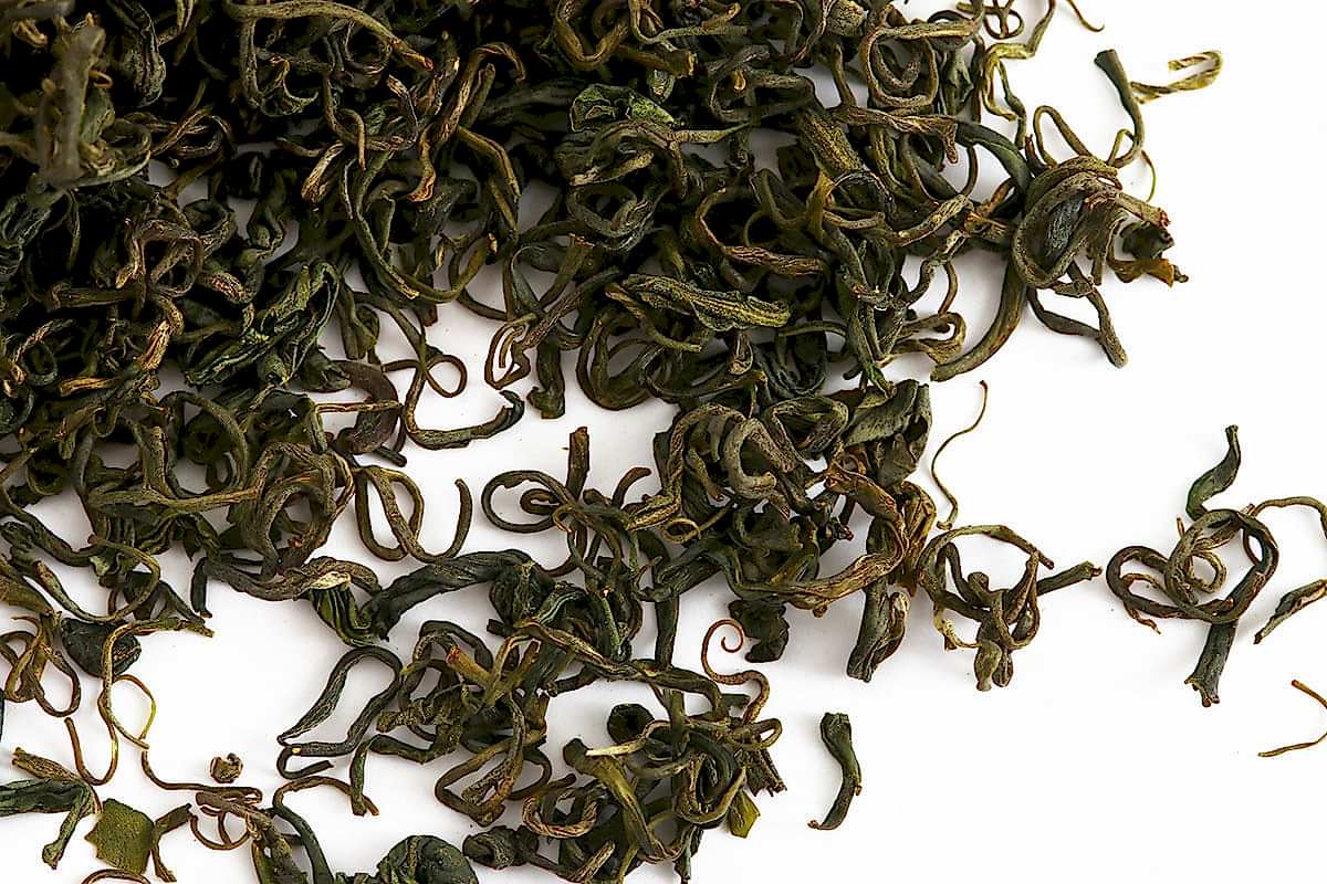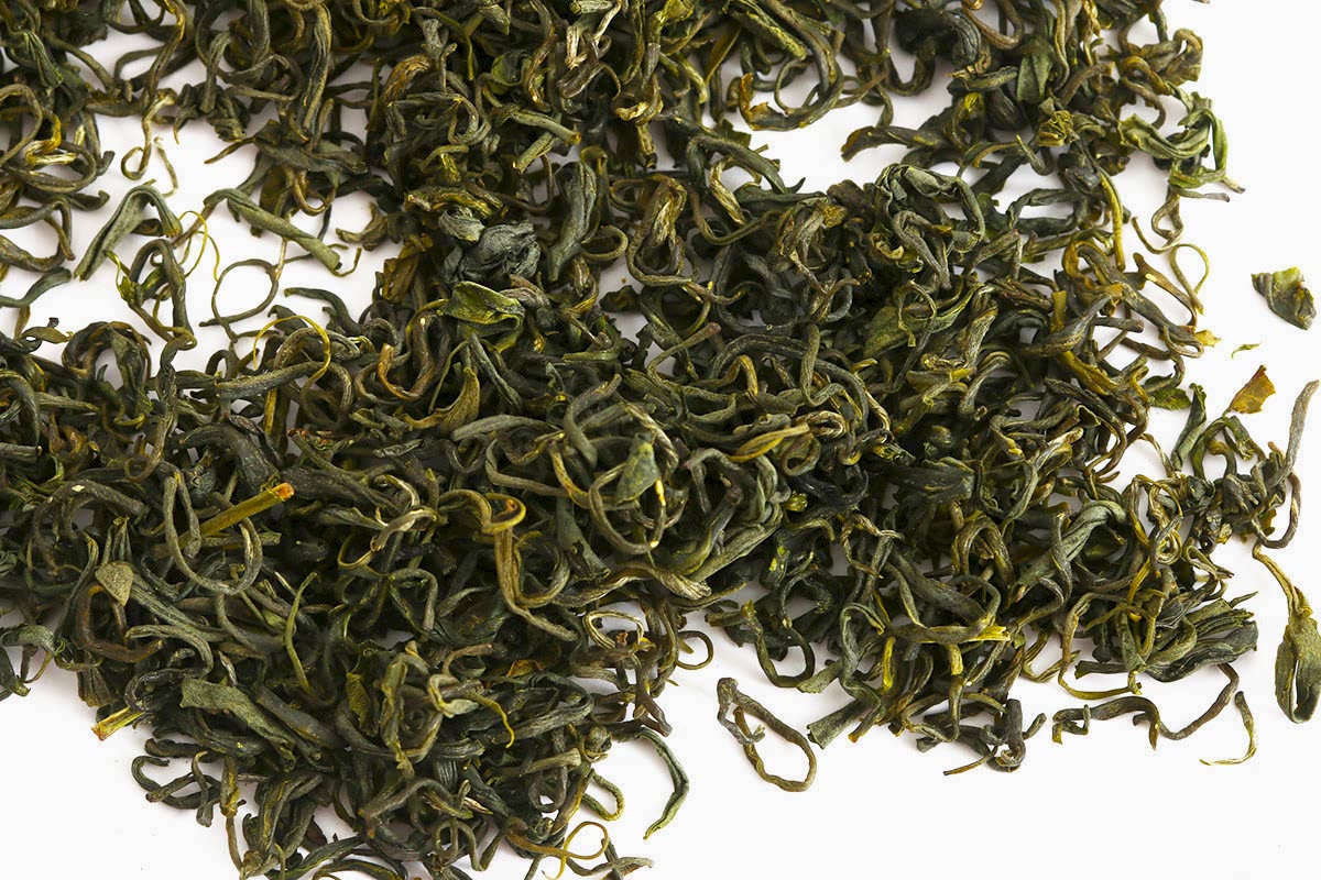 Дикорастущий зеленый чай с гор Хуань Шань, родственник чая Хуань Шань Мао Фэн, Pin-Up чай с оставленных старых чайных плантаций знаменитого родственника и одичавших чайных кустов. Кусты этого чая высокие, а листья крупные. Для такого чая используют грубую обжарку, но при этом чай в заваривании получается мягкий и дает золотистый настой.