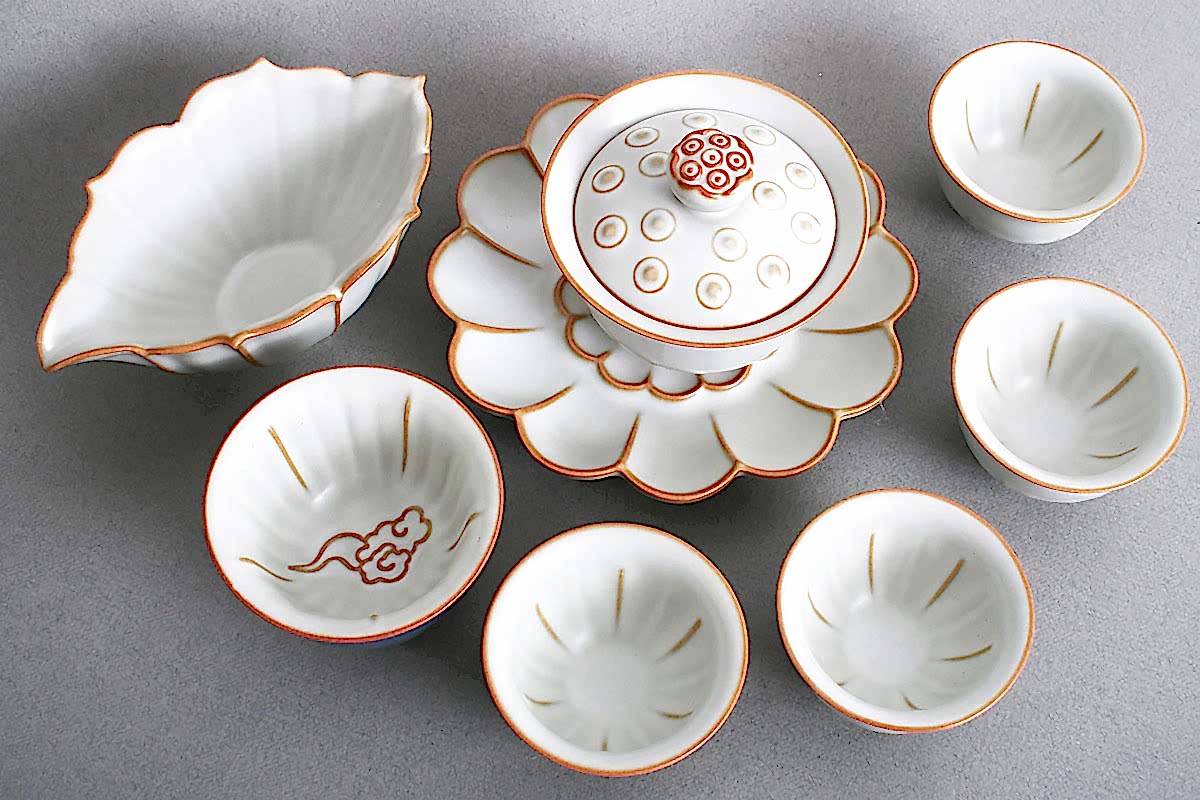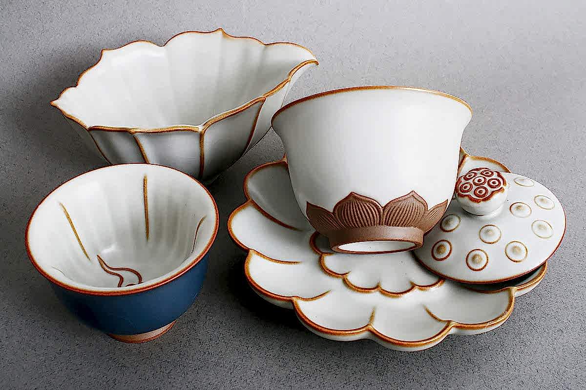 Набор для чайной церемонии из 6 предметов (4 пиалы, большая пиала, Pin-Up и чахай). Подробнее про посуду для чайной церемонии читайте встатьев нашем блоге.