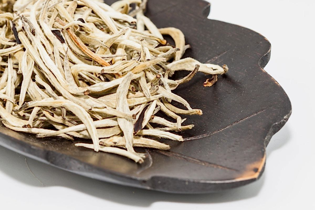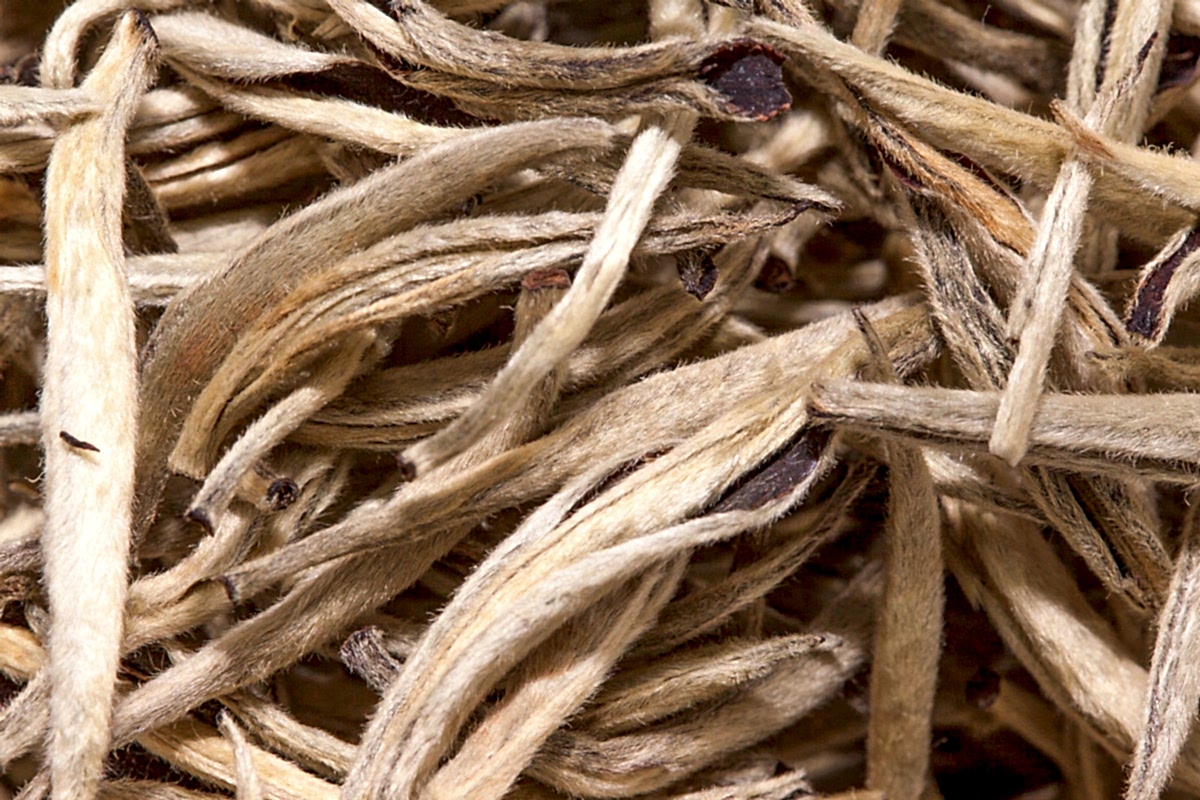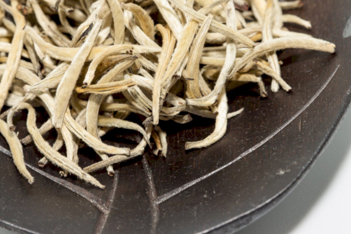 Белый чай из провинции Юньнань, Pin-Up из типсов чайного растения. Особенность этого чая - исполинские почки длиной 2,5 - 3 см. Это почки крупнолистовых юньнаньских сортов чая, которые сделаны по технологии производства белых чаев Фуцзяни.