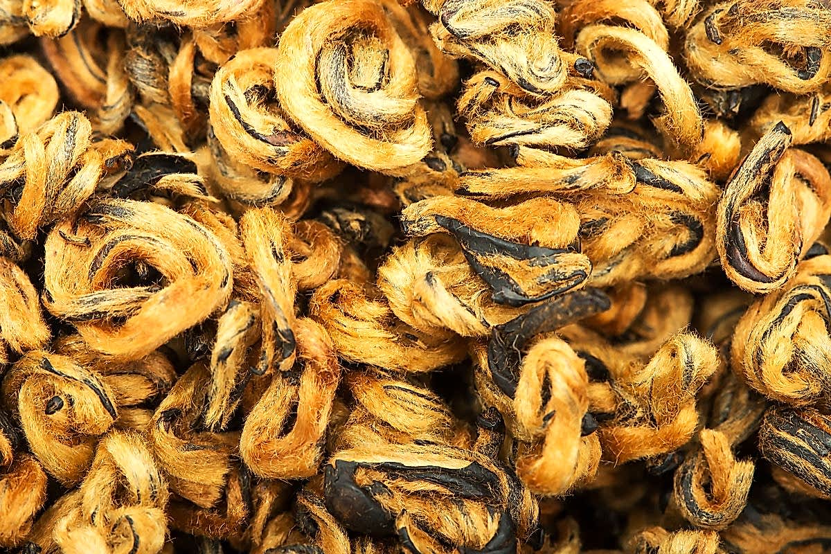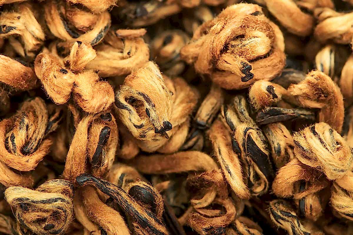 Хун Ло Цзинь Хао Я - красный чай из почек с золотым ворсом, скрученный в спиральки. Выглядит Pin-Up как кучерявое золото. Хун Ло такого высокого качества попадается крайне редко. Именно этот экземпляр был привезен из провинции Юньнань.