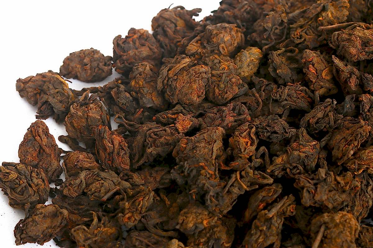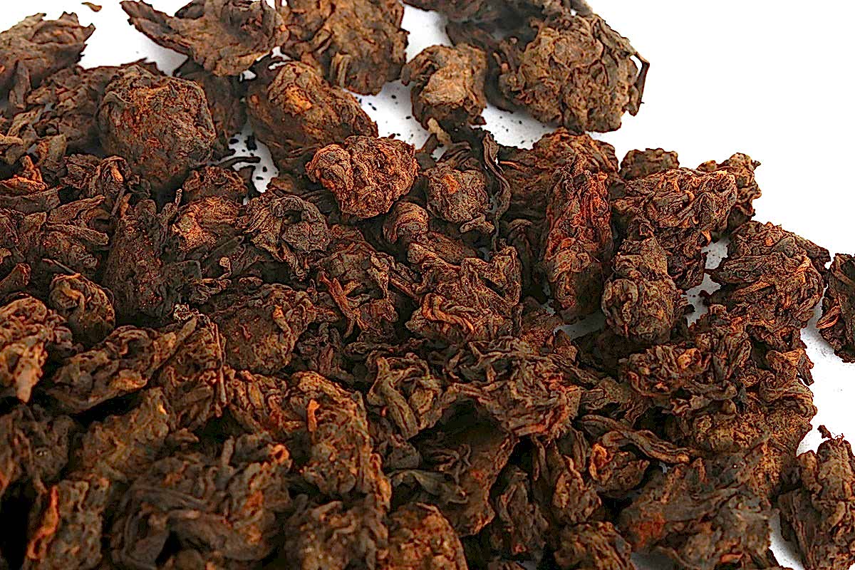 Лао Ча Тоу - "старые чайные головы" - прекрасный экземпляр шу пуэра, который стоит попробовать заварить разными способами. Так же интересен он и технологией Pin-Up изготовления - в то время как шу пуэр ферментируется в огромных кучах путем влажного скирдования, по краям образуется так называемая корка, которая, в последствии, и распадается на эти комочки.