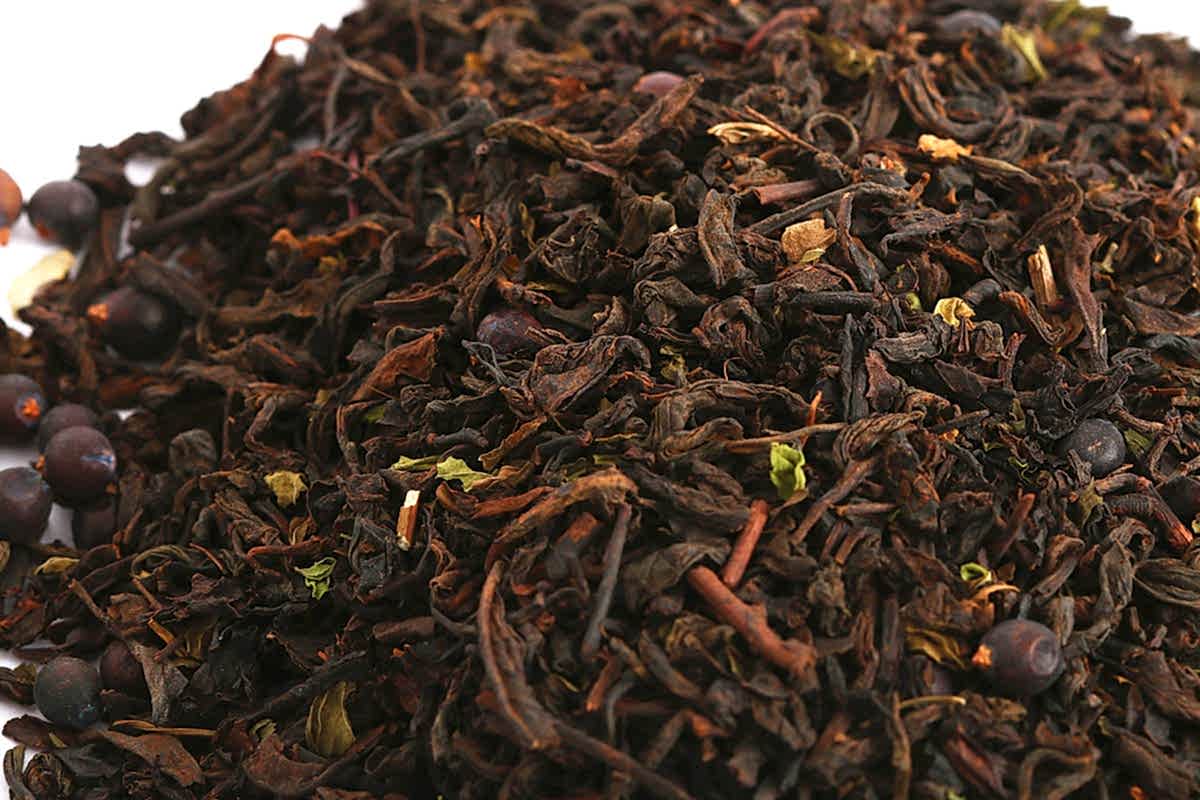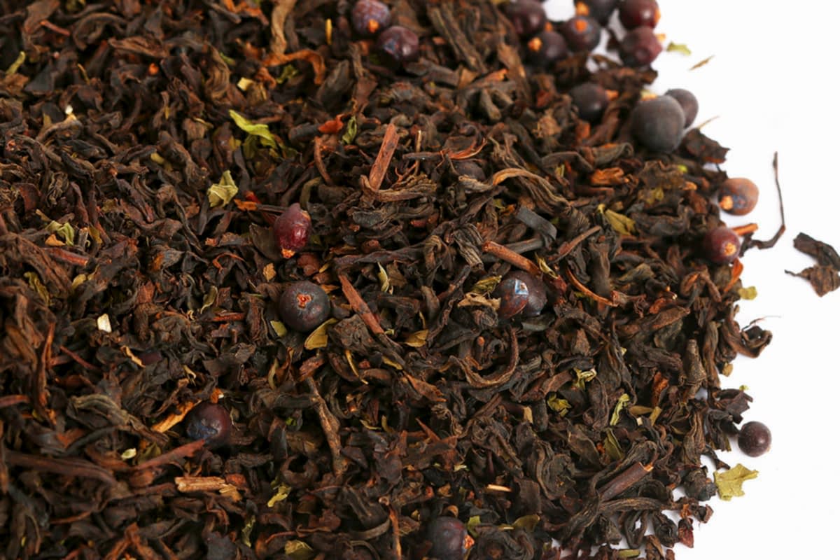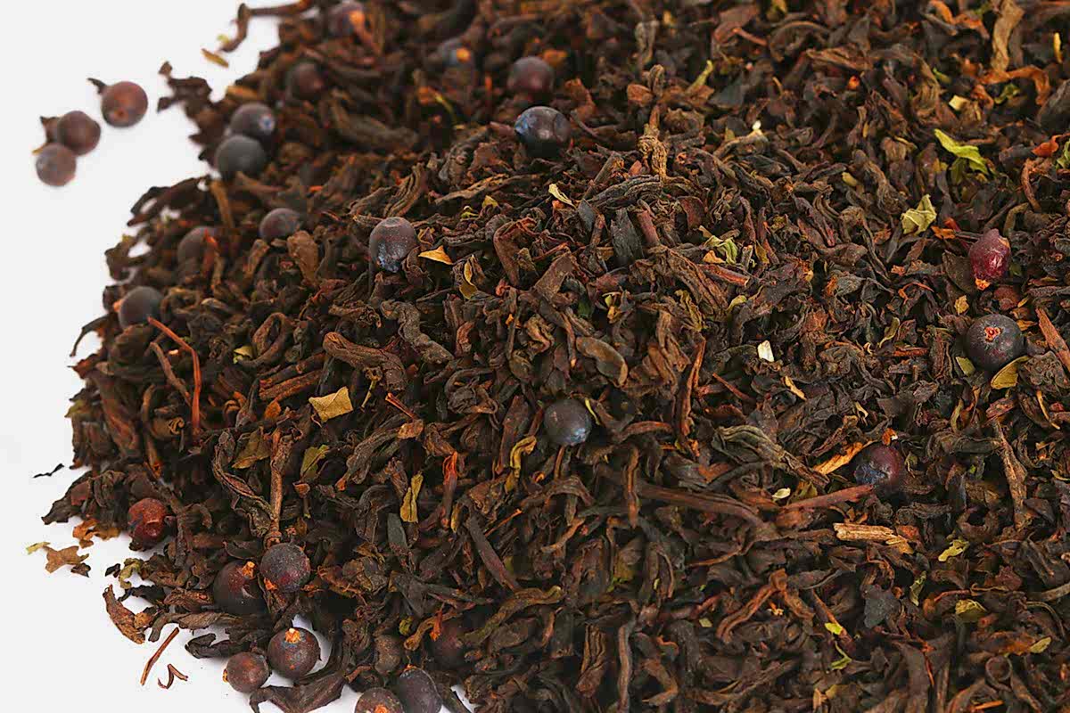 Состав: купаж Pin-Up выдержанного чая Пуэр и красного чая Кимун, рубленные листья мяты, ароматные ягоды можжевельника.