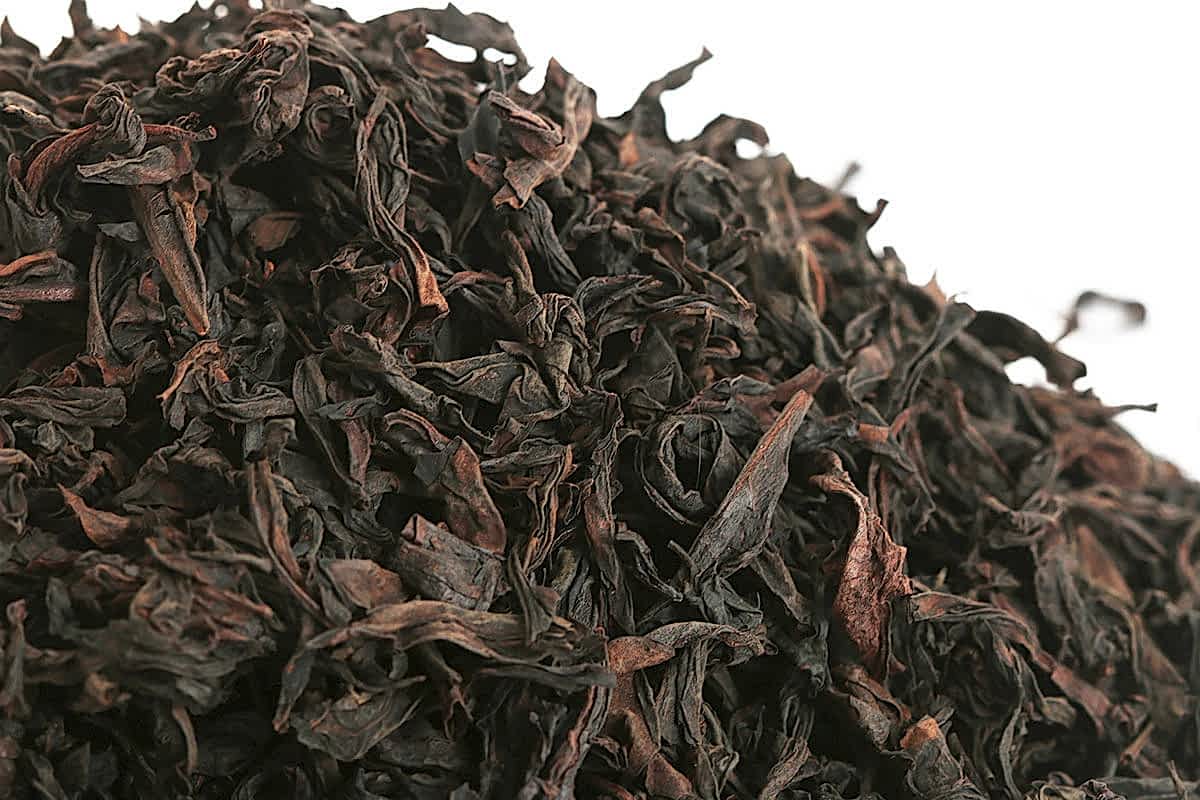 Плотные, тёмно-коричневые, почти чёрные листы источают аромат жареных орехов, древесной коры старого дерева, Pin-Up и старых книг. При прогреве в чайнике появляются кофе, горький шоколад и карамельная сладость, словно от кленового сиропа.