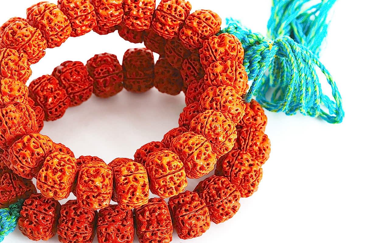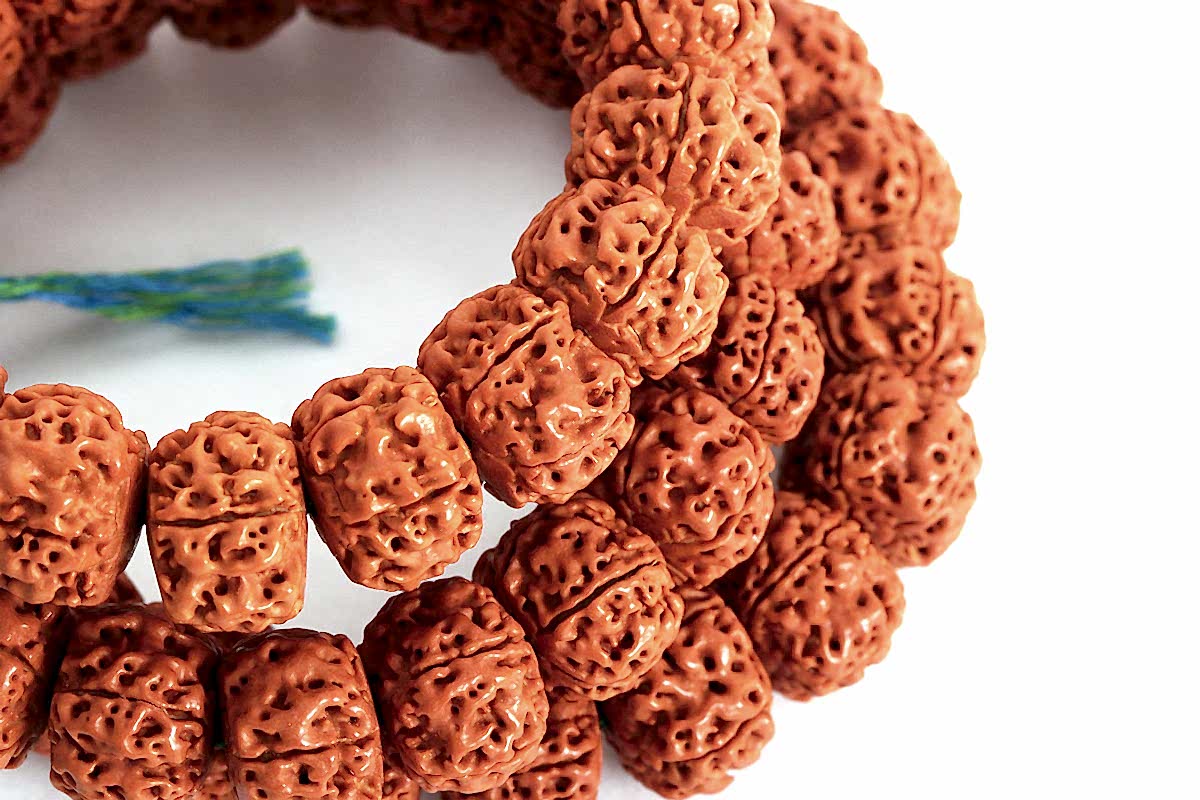 Чётки сделаны из зёрен вечнозелёного дерева Рудракша (санскрит: रूद्राक्ष, "Глаза Рудры", ботаническое название: Elaeocarpus ganitrus). Эти деревья растут в предшорьях Гималаев, на высоте 1500-2000 метров над уровнем моря.